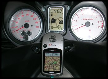 Sostituito il GPS Garmin Etrex Vista cartografico con il nuovo modello a colori. Mantenuto il sistema di fissaggio sul manubrio utilizzando il set 'clip da cintura' della Garmin fissato con delle strisce di gomma avvitate sulla plastica del manubrio.
