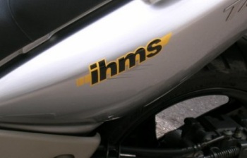 Durante un giro sul lago d'Iseo, un po' di brecciolino in curva mi ha fatto finire per terra. Per fortuna la bassa velocità ha fatto sì che i danni fossero molto limitati: un po' di abrasioni sullo scudo anteriore sinistro e sulla carena posteriore. Nessuna plastica rotta. Far verniciare i pezzi danneggiati o sostituirli costava un'enormità (dai 500 euro in su) e quindi con un po' di vernice argento e un provvidenziale adesivo di IHMS ho risolto in maniera che ritengo più che egregia... E poi qualche "ferita di guerra" fa più onore.